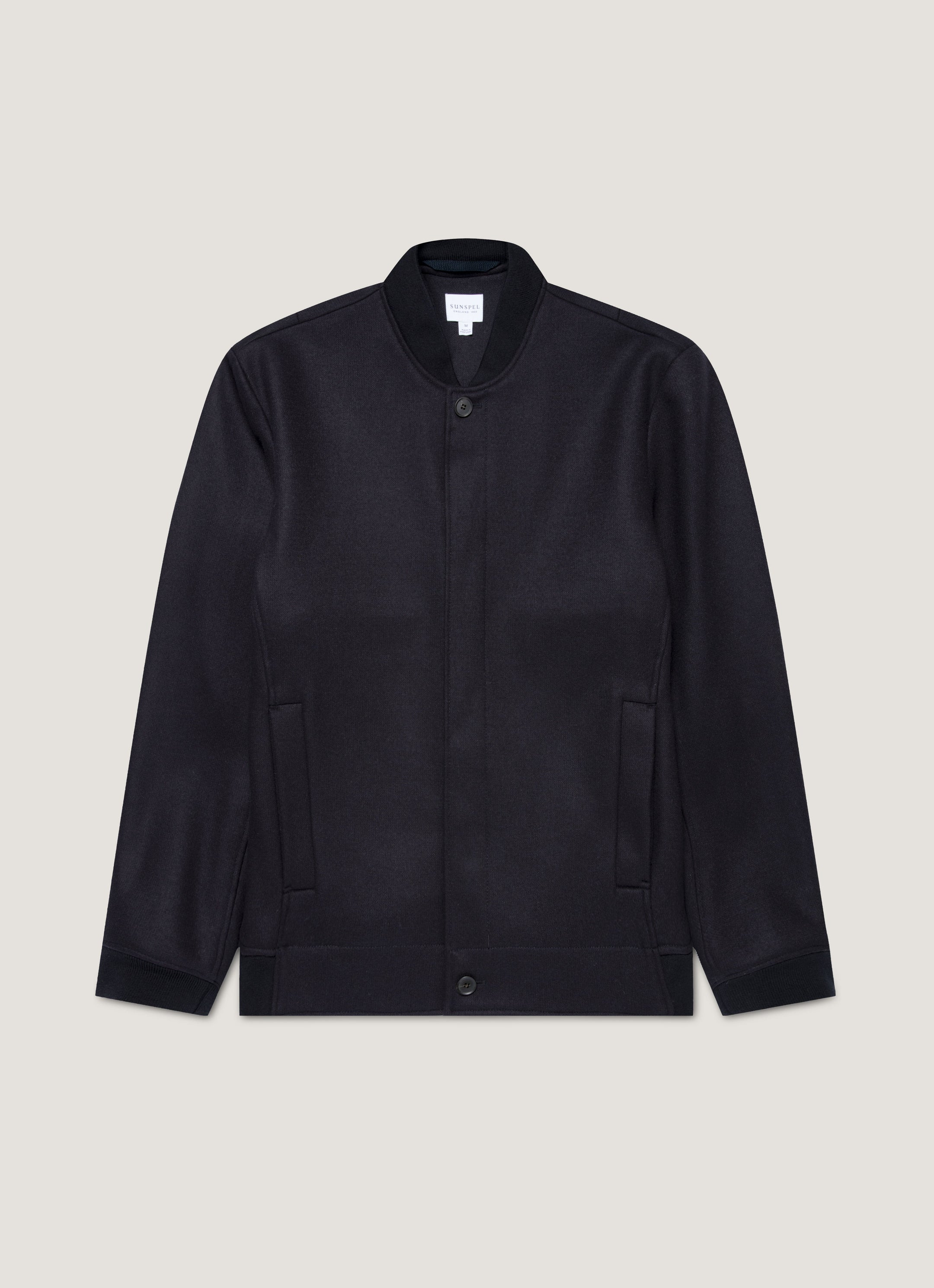 An elevated, tailored take on the classic bomber jacket, crafted from exceptionally soft boiled wool jersey woven by a renowned Italian mill. Warm and substantial, it features a clean, contemporary silhouette with shoulder darts, a wool rib neckline, and a hidden placket. Designed with a modern fit, side seams, and welt pockets – an effortlessly refined outer layer for the colder months. Product Code: MJAC7183-BUAA Fabric & Care - 79% Wool, 21% Polyamide - Do not tumble dry - Dry clean only - Made in Portugal Size & Fit - Regular fit - Model is 6'3", chest 39" and wears a size M