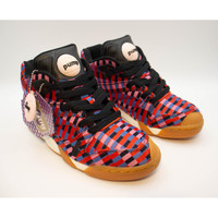 Limited edition of the Reebok Court Victory Pump Melody Ehsani x Hassan Hajjaj. New with tags, extra shoelaces and original box. A quite unique and exquisite shoe, deadstock item from 2017. If you like exclusive items, this one is for you. Virtually no new units available in the market. Melody Ehsani and Reebok team up for a special sneaker pack for all the lovers out there. The latest from Melody and Reebok features two colorful looks for the Court Victory Pump for Valentine’s Day, also in collaboration with Moroccan artist Hassan Hajjaj. The two colorways feature patterned textile uppers in prints inspired by Senegalese mats that Hajjaj often incorporates into his artwork. Details Online since:2024-11-13 Categories: women Category: Shoes Sub-category: Trainers Designer: Reebok Condition: 0 Material: Polyester Colour: Other Size: 37.5 EU Location: empty Reference: 49600411