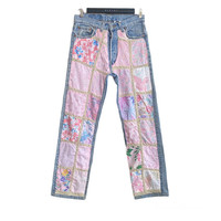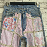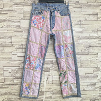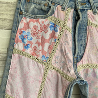 Vintage 90s ReMade Levis 501 Patchwork Floral Jeans 28x28