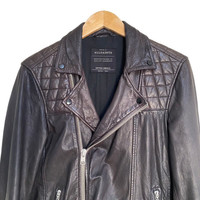 BRAND:-ALLSAINT MADE IN :- INDIA ARMPIT:- 19inch LENGTH :-26.5inch MATERIAL :Leather CONDITIONS :GOOD USED THIS IS PRELOVED CLOTHING.. PLEASE DONT EXPECT IT TO BE LIKE NEW OR IN PRISTINE CONDITION.PLEASE ENLARGE THE PHOTO FOR CLEARER IMAGE. PLEASE CHECK ACTUAL SIZE CAREFULLY, NO RETURNS OR COMPLAIN FOR WRONG SIZE 【DISCOUNT】 Please Give Us Your Offer, We Can Only Accept The Discount By Negotiation. 【SHIPPING】 Basically We Ship Your Package After You Purchase Same Day Or Next Day Please Leave Your Phone Number While Make A Purchase. I Need It For The Shipping Form. Happy Shopping !!