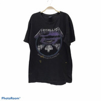 Read all description carefully before buying. If you have any inquiries, feel free to ask BRAND : METTALICA SIZE. :S MADE IN :- INDIA ARM PIT TO ARM PIT:-20.5”incher BACK COLLAR TO HEM:-27”incher MATERIAL :Cotton CONDITIONS :-8/10 Refer Pictures / good used vintage condition / no hole no stain PLEASE CHECK ACTUAL SIZE CAREFULLY, NO RETURNS OR COMPLAIN FOR WRONG SIZE 【DISCOUNT】 Please Give Us Your Offer, We Can Only Accept The Discount By Negotiation. 【SHIPPING】 Basically We Ship Your Package After You Purchase Within 3 Days. 【NOTICE】 Don't Worry About Customs Tax or Fees. I usually Declare all items as GIFT and declare VALUE of item Lower than Original Price. Please Leave Your Phone Number While Make A Purchase. I Need It For The Shipping Form. Happy Shopping !