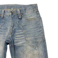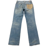 Japanese Brand - NCFM Denim Flare Leather Pocket Faded Jeans