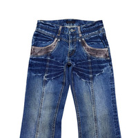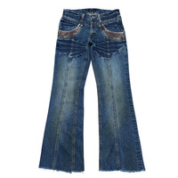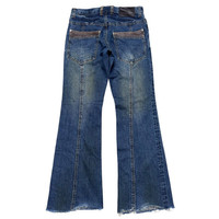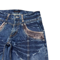 Morgan Homme Leather Panel Denim Flare Jeans Distressed