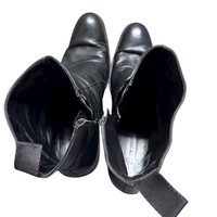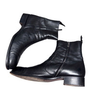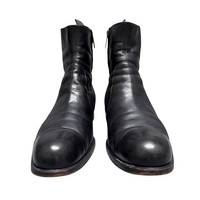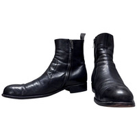 Sergio Rossi Made in Italy Black Leather Zip Boots Size: US10.5 UK9.5 / EU44.5 Beautiful pair of genuine Italian leather boots from Sergio Rossi. Made in Italy with high-quality smooth black leather that’s aged nicely and formed natural creases along the upper — gives that artisanal vintage vibe similar to Guidi or early 2000s Italian footwear. Featuring a clean side zip design, rounded toe, stacked leather sole, and solid craftsmanship throughout. Soft inner lining, sturdy heel construction, and premium finishing that shows Rossi’s classic luxury standards. Size: UK 9.5 / EU 44.5 / US 10.5 Condition: Good used condition, some wear on outsole and natural leather patina Color: Black Made in: Italy