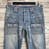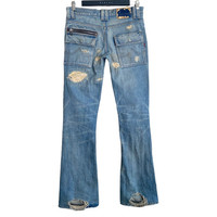 Vintage Backbone Distressed Denim Bush Flare Pants