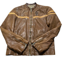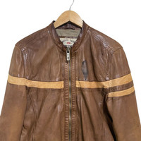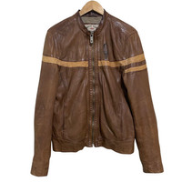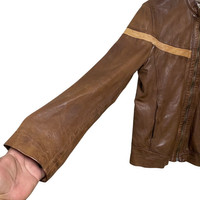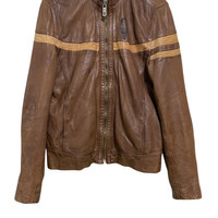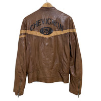 Vintage Chevignon Leather Jacket Cafe Racer Brown Patina
