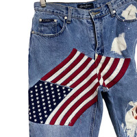 Vintage Sean John Denim Embroidery Patchwork Jeans USA Flag