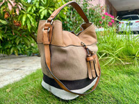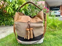 MESUREMENT DETAILS Made in China Measurement : 10” (L) x 13” (H) x 8” (W) inch Serial No : CNQINCHOQIN Material : 56% Jute 44% Cotton (Main fabric) & trim with cow grain leather Hardware : Goldtone Handle : 5” & 14” inch YKK zipper