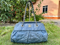 Authentic Chanel Iridescent Quilted Calf Bowling Tote Bag