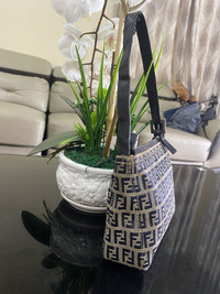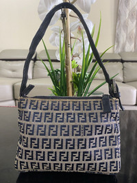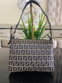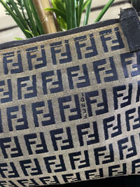Authentic Fendi Zucca Monogram Navy Pochette Bag