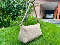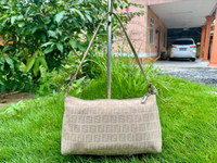 Authentic Fendi Zucchino Canvas Baguette Shoulder Bag