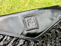 Authentic Vintage Fendi Black Woven Leather Clutch Bag