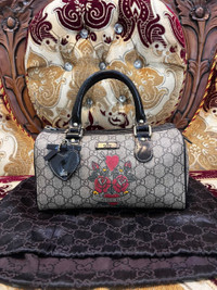 Authentic Gucci Beige Ebony Heart Tattoo GG Supreme Small
