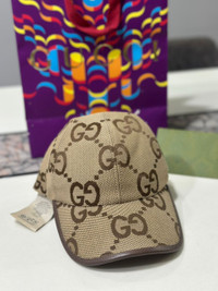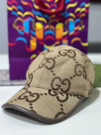 Authentic Gucci Jumbo Monogram GG Canvas Logo Biege Cap