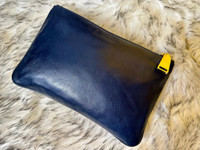 Authentic Jil Sander Navy Blue Leather Clutch Bag