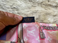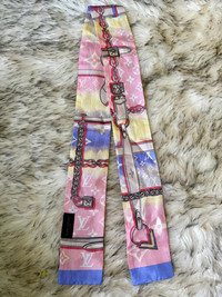 MESUREMENT DETAILS Made in France Size : 46 (L) x 3 (H) Inch Material : 100% Silk S/S 2020 Collection Tie-dye print that was inspired by shibori, which is a Japanese technique that consist of twist and knotting fabric before dying it This scarf has the Monogram pattern with a fun graphic overlay of leather straps, metal chains and padlocks It can be worn as a scarf, a headband or a belt. WE GUARANTEE SATISFICATION & AUTHENTIC ITEM PAYMENT METHOD : PAYPAL / STRIPE