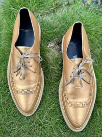 Hedi Slimane × Saint Laurent Paris - Saint Laurent By Heidi Slimane Metallic Gold Lace Up Classic
