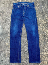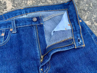 Measurements: Made in USA size : W32 L34 waist 34 inches outseam 44 inches Material : 100% Cotton Button No : 379 Single R red tab Ykk zipper
