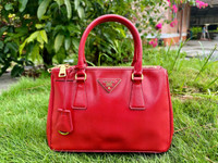 Authentic Prada Saffiano Lux Small Galleria Double Zip Fuoco