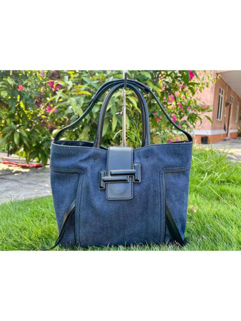 Authentic Tod’s Double T Denim Medium Shopping Tote Bag