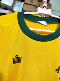 Good condition 80% No holes no tears Minor stains Single stitch Yellow on body and green at ringers Embroidery Logo and spells Made in Japan 90s