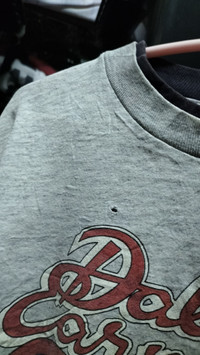 Good vintage collection 70% Have 1 hole at chest and minor stains Double round neck and sleeve fashion Single stitches Cotton Hundred 90s Copyright 1991 Made in Usa