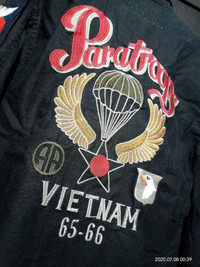 Authentic Reproduction Avirex Us Navy Paratroop Vietnam 60s / Great embroidery and condition / minor faded Sz fit S Measurements Armpits 20 Length 27 Made in China . . . 📌Terms & Conditions. 📌 ✅✅IMPORTANT✅✅ 📍PLEASE READ BEFORE YOU BUY📍 By clicking buy, you hereby agreed to the following terms and conditions: - The actual color may differ according to your monitor's display settings. - Measurements may differ ±2cm due to human errors. - All sales are final. No return, no refunds. - Shipping will be done from Thailand. - If you decide to purchase from us, please allow 3-7 business days for your order to be processed for shipment. This EXCLUDES the shipping time by the shipping company. - Shipping time varies according to your location. It will take 1-2 weeks to reach your place. - I will not be liable for any damages caused by the Shipping company. - I will not be liable for any delays on the shipment caused by the shipping company. Please refer to my BIO for more details. Buy with confidence. Be courteous. Peace, no war. ✌️