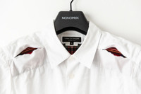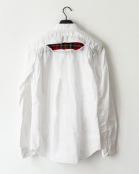 A very interesting shirt from Comme des Garçons Homme Plus featuring plaid insert detailing on the front and back. Size S. A small mark and slight discolouring pictured.