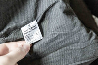 An absolutely gorgeous cotton/linen jacket from French artisanal designer Marc le Bihan. Features dangling gold chain detail along the arm and body with a snap closure. Size 36.