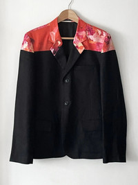 A unique linen painted shoulder blazer from Yohji Yamamoto's spring 2016 collection. Size 2.