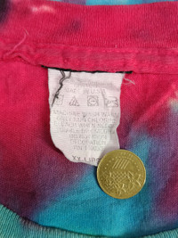 Nice tye dye work and color. One pinhole found. Made in USA Size on washtag: XXL Armpit to armpit: 29" Length: 33"