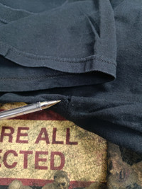Missing tag. One pinhole found. Armoit to armpit: 24" Length: 29" Washed and ready to wear!