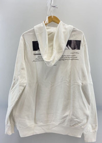 Brand: Off-White c/o Virgil Abloh Model: “Caravaggio” Hoodie – FW18 Style code: OMBB029F18A54003 Size: M Color: White (slightly cream from wear) Fabric: 100% cotton – Made in Portugal Authenticity: Correct mint-green “MAIN LABEL” (2013©), booklet tags with OFF-WHITE OPERATING SRL, Via Manin 13, and matching OMBB029F18A54003 care label. Condition: Good (8.5/10) – Faint overall wear and light marks on cuffs/sleeves, no major flaws, prints remain crisp.