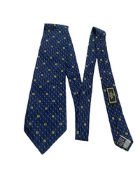 Fendi Navy Blue Logo Patterned Jacquard Silk Tie