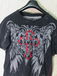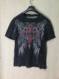 Japanese Brand - Affliction Men's Burgundy and White T-shirt