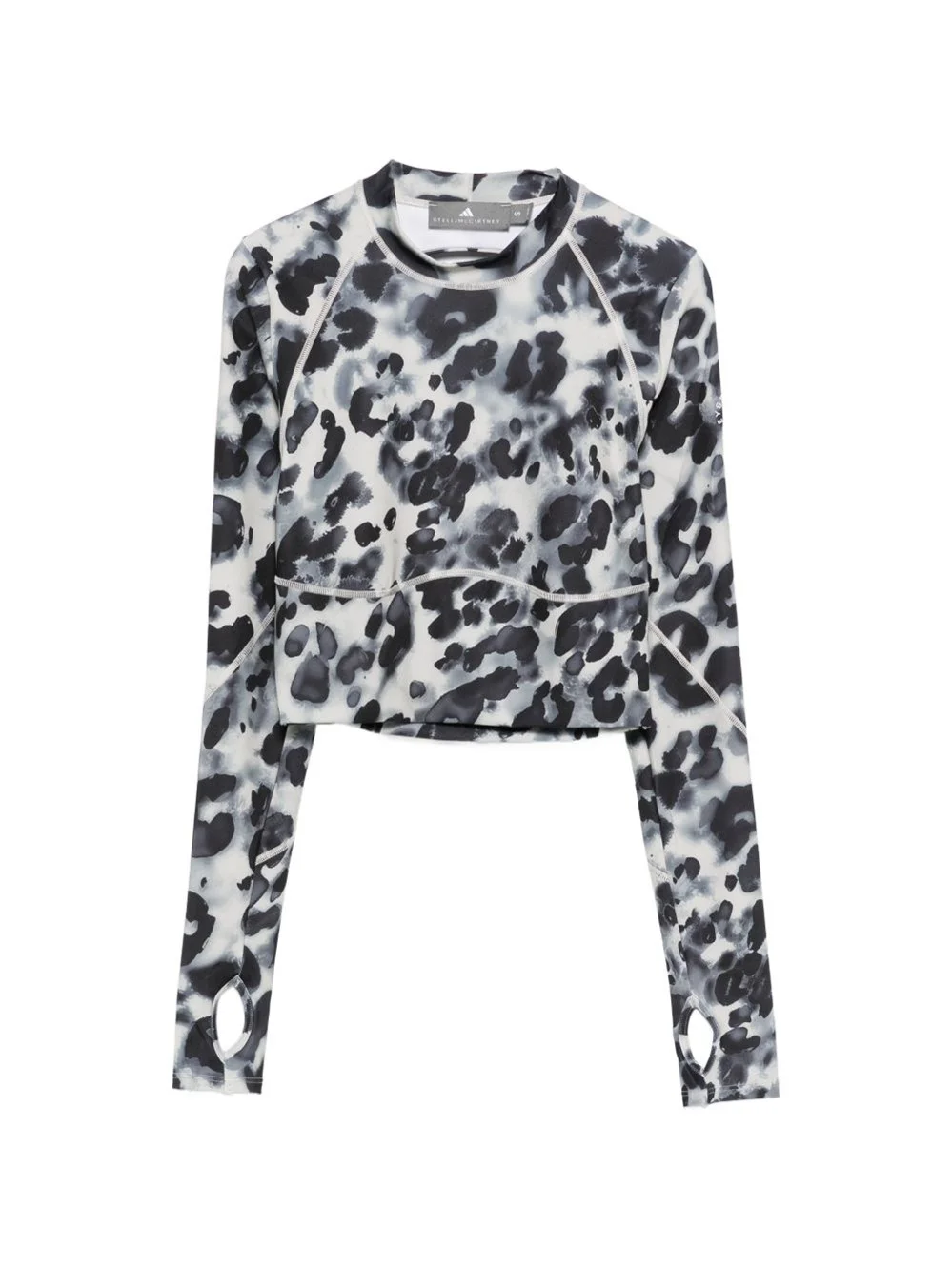 Open-back t-shirt [ SKU: 10194115084 ] The Open-back t-shirt from Adidas By Stella McCartney redefines contemporary elegance in the realm of luxury tops. Featuring a striking grey animal pattern, this piece boasts long sleeves with thumb holes and a cropped design that enhances its modern appeal. Ideal for both casual outings and chic gatherings, this t-shirt can be effortlessly paired with tailored trousers or a sleek skirt for a sophisticated look. Elevate your wardrobe with this statement piece that seamlessly blends comfort and style, perfect for the discerning woman seeking versatility and flair. Composition 100% Polyamide Reference JY8164WONALU/BLACK Made in China
