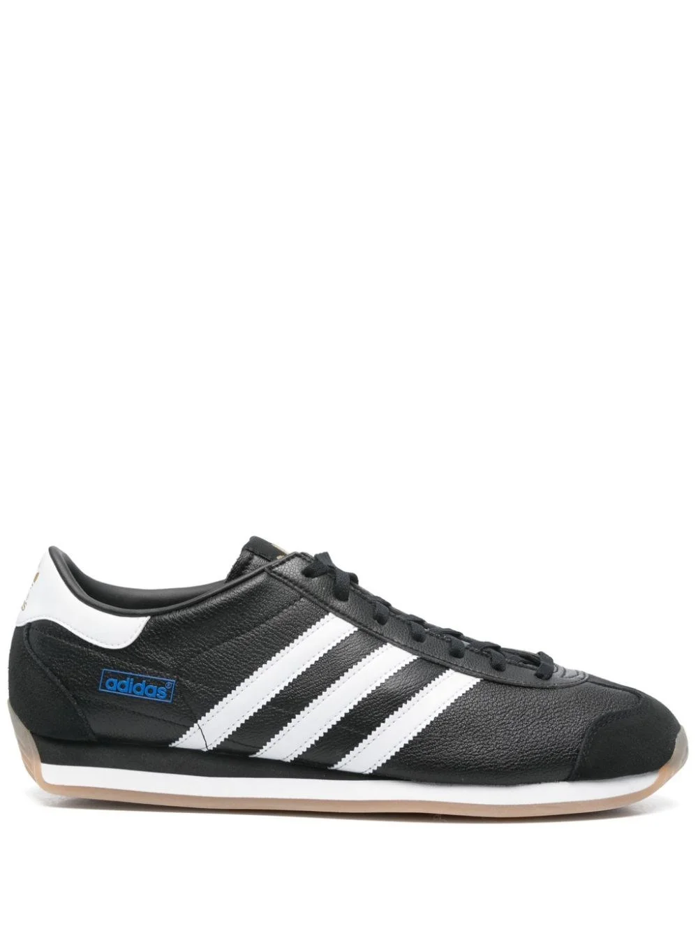 Sneaker Country [ SKU: 11307226201 ] ADIDAS Country sneaker in black leather with suede details and white leather details and a brown rubber sole. Reference IH0299COUNTRYCBLACKFTWWHTBLUE Made in Vietnam Size and Fit HEEL: 2.5 Centimetres Sole height: 1.5 Centimetres