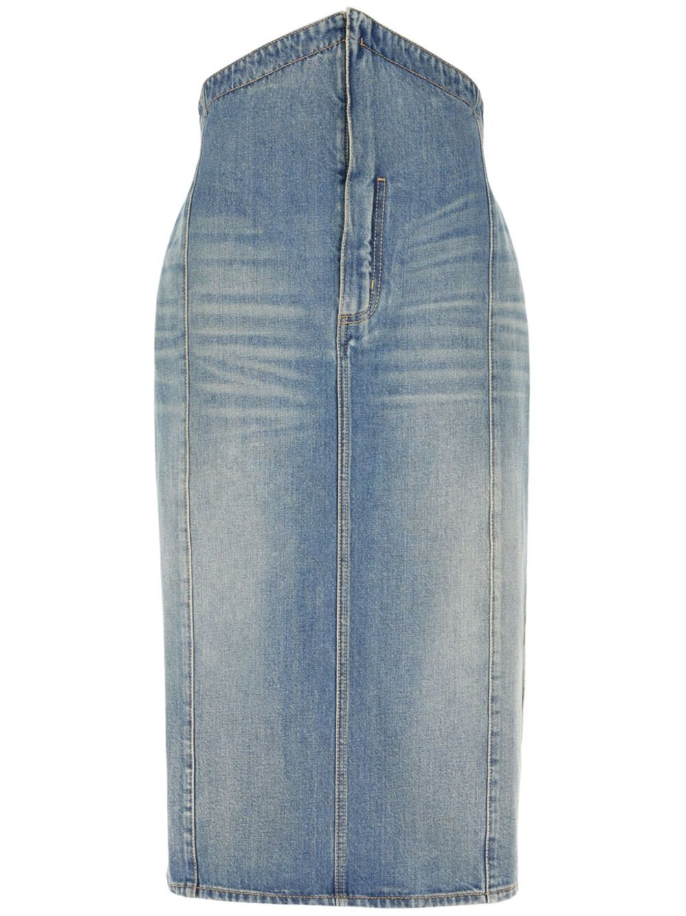 Denim long skirt [ SKU: 10193258157 ] indigo blue short front zip fastening two rear patch pockets Composition Cotton 100% Reference 817920QMACV4315 Made in Italy Size and Fit This piece fits true to size. We recommend you get your regular size Model is 1,75m / 5ft 8in wearing size 40 (IT)