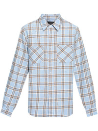 Checkered print cotton shirt [ SKU: 11300808686 ] light blue cotton plaid check pattern front button fastening applique logo straight-point collar two chest patch pockets long sleeves frayed hem Composition 100% COTTON Reference AMSTFL1003SEABLUE Made in USA Size and Fit CHEST: 116.0 Centimetres SLEEVE LENGTH: 91.0 Centimetres Length: 76.0 Centimetres