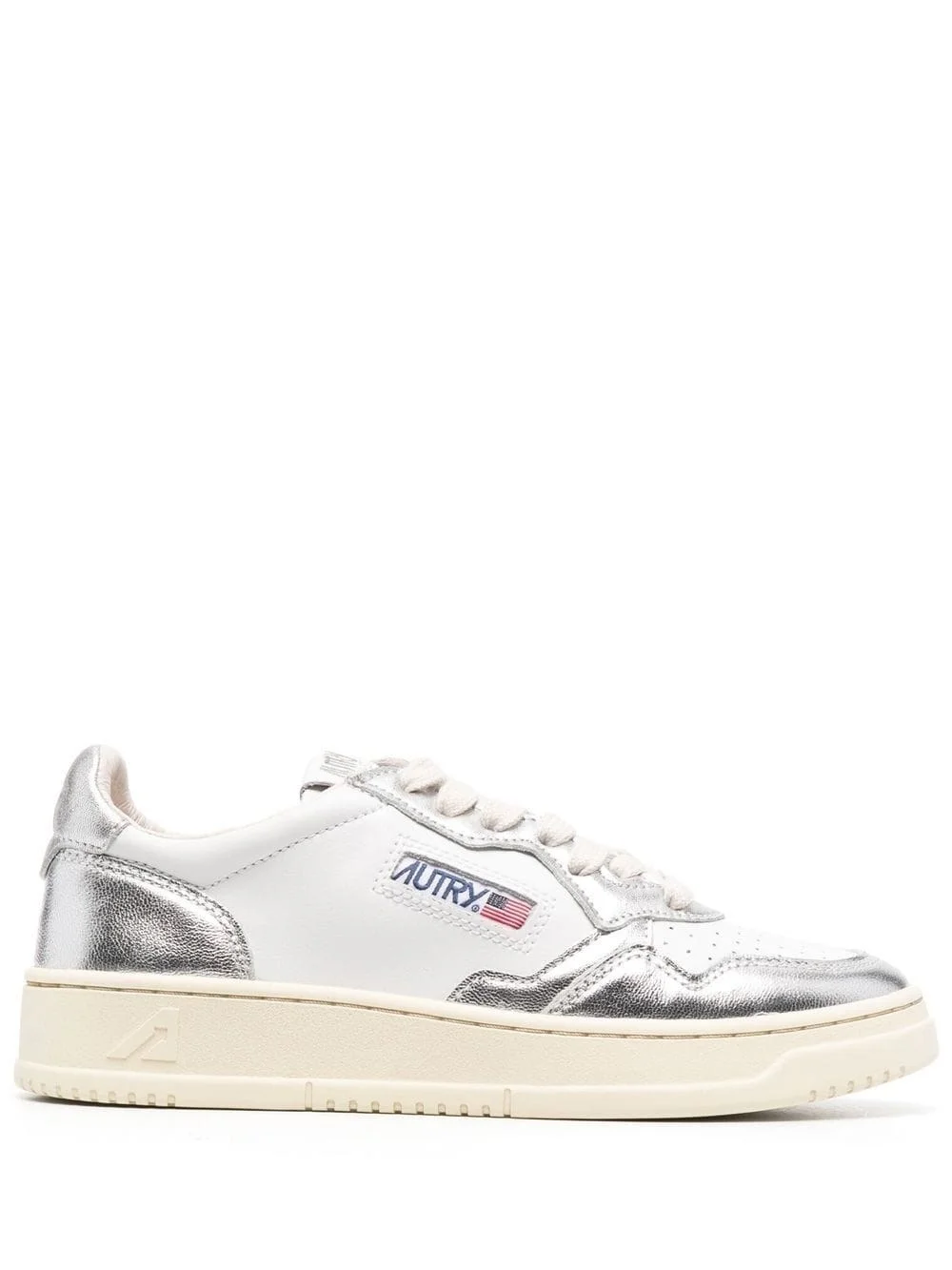 MEDALIST LOW BICOLOR SNEAKERS IN WHITE AND STEEL LEATHER