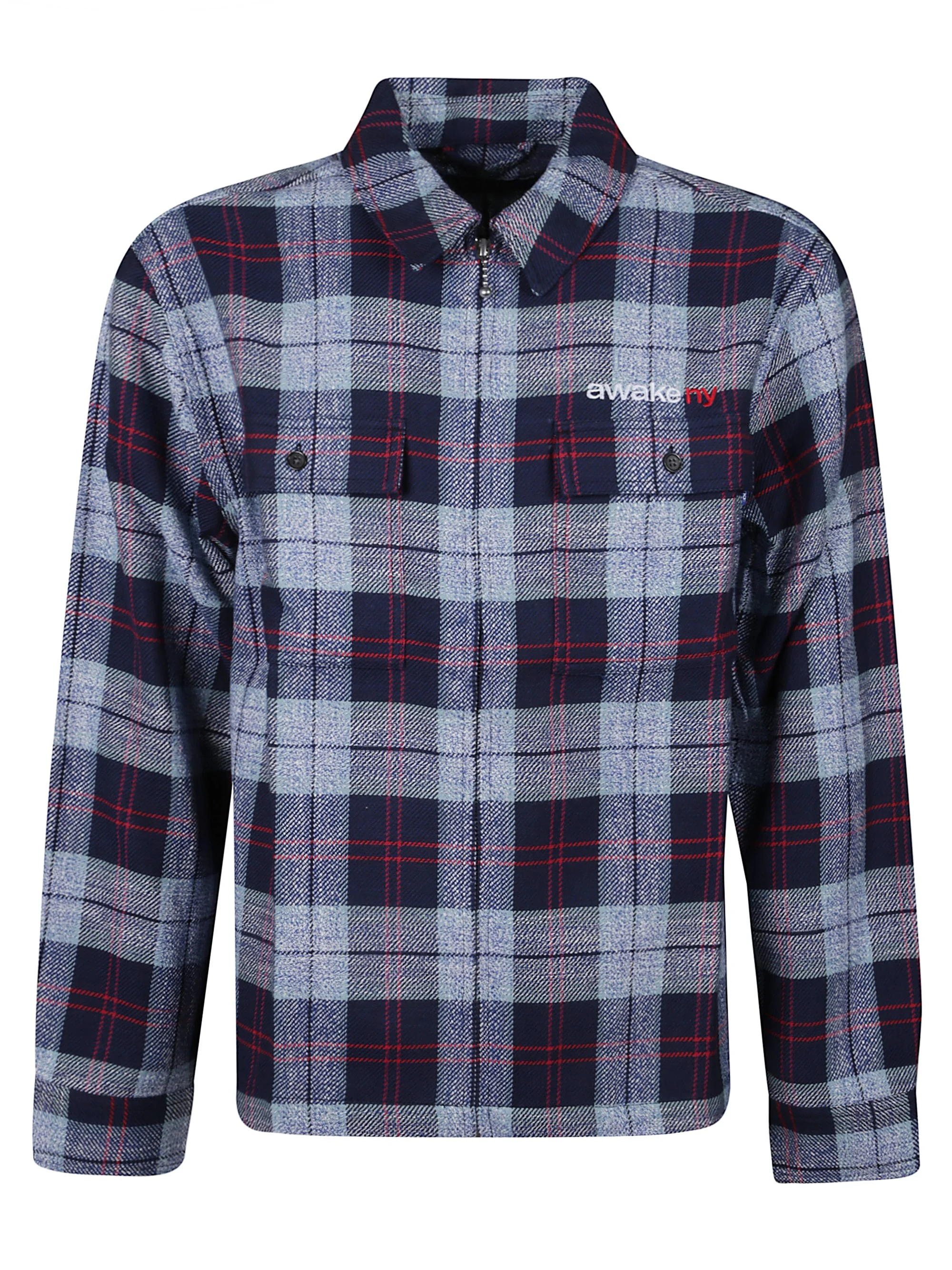 Overshirt "Flannel Zip Shirt" [ SKU: 11459929518 ] blue check pattern zip fastening chest pockets buttoned cuffs Composition 100% COTTON Reference TP001BLUE Made in China