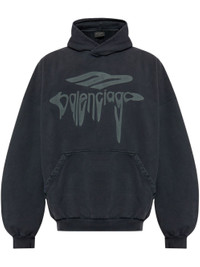 3B Liquified sweatshirt [ SKU: 11300114795 ] BALENCIAGA 3B Liquified sweatshirt in black and grey in cotton with a washed effect, hood, dropped shoulders, kangaroo pocket, print and gathered cuffs and waist. Composition 100% COTTON Reference 803265TRVS91013 Made in Portugal