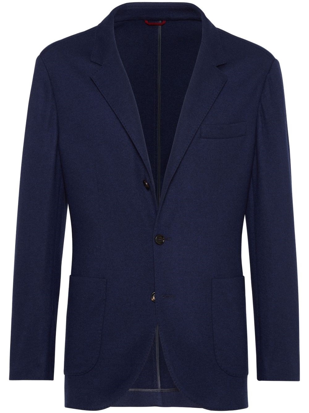 Cashmere single-breasted jacket [ SKU: 10198487032 ] navy blue cashmere notched lapels front button fastening long sleeves buttoned cuffs jetted chest pocket two side patch pockets English rear vents Reference ML8968J01C8272 Made in Italy
