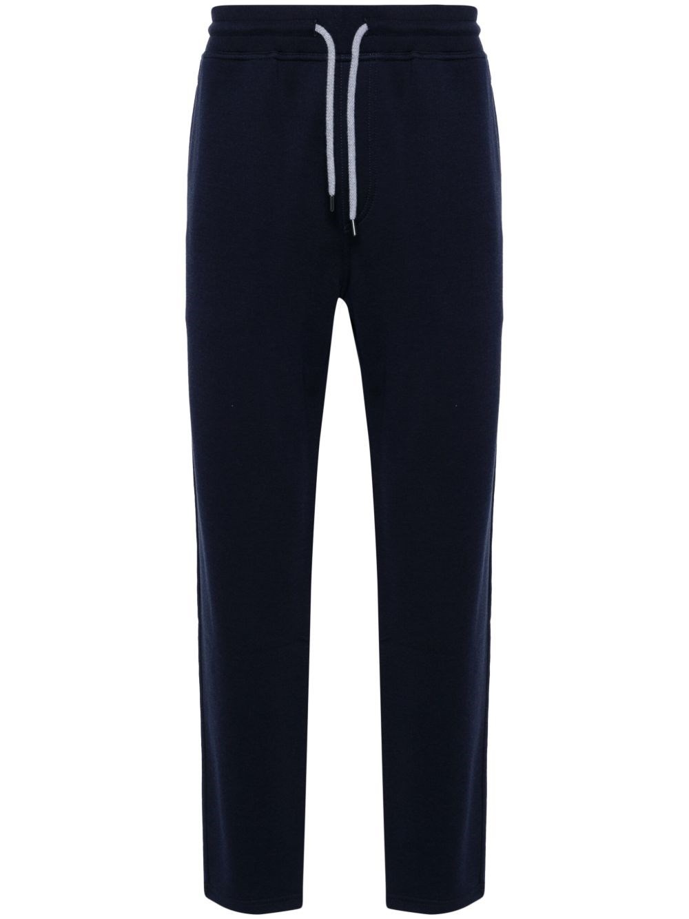 Cotton blend sweatpants [ SKU: 10196434336 ] navy blue cotton blend jersey texture elasticated waistband two side welt pockets two rear jetted pockets tapered leg drawstring fastening Reference MM8313243GC1265 Made in Italy