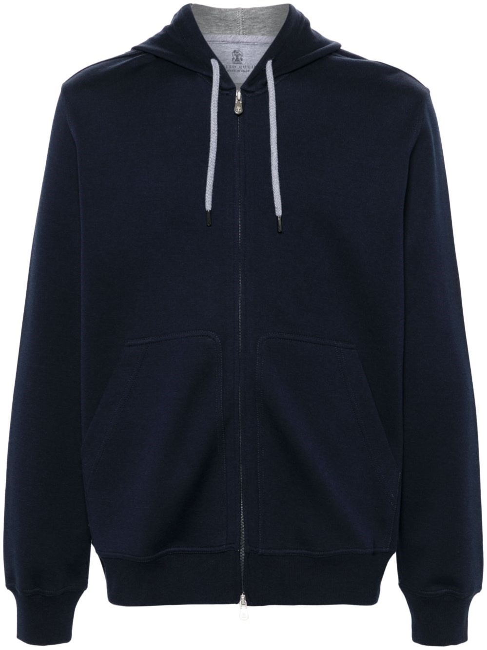 Cotton blend zipped hoodie [ SKU: 10199369163 ] cobalt blue/grey cotton blend jersey texture drawstring hood long sleeves two front pouch pockets ribbed cuffs and hem front two-way zip fastening Reference MM8319069GC1265 Made in Italy