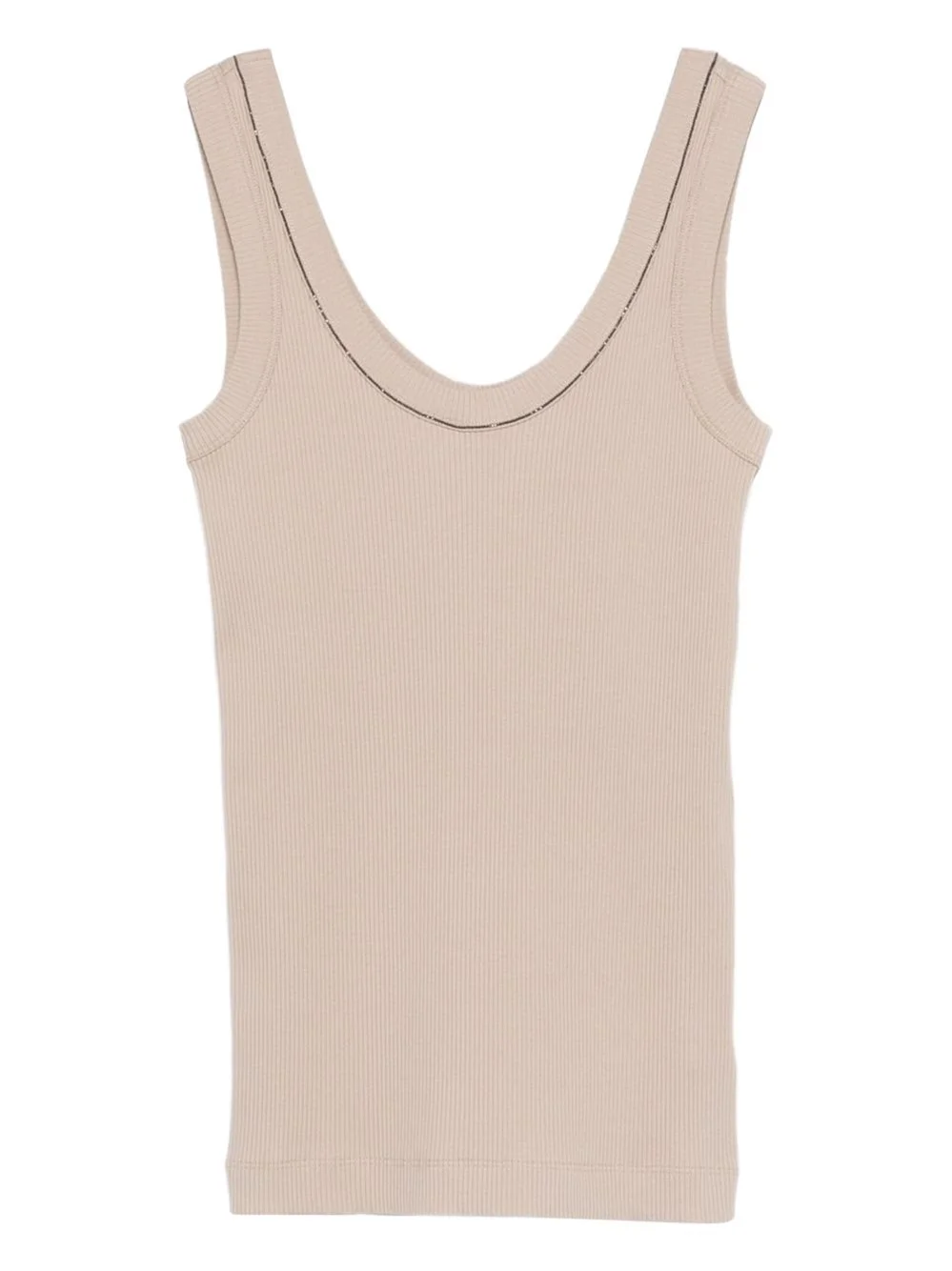 Cotton tank top [ SKU: 10194005698 ] The Cotton tank top from Brunello Cucinelli redefines luxury in the world of women's tops. This exquisite piece features a minimalist design that effortlessly elevates any outfit, making it perfect for both casual outings and sophisticated gatherings. Pair it with tailored trousers for a chic office look or with a flowy skirt for a relaxed weekend brunch. The unique craftsmanship ensures a refined silhouette, while the careful attention to detail speaks to the brand's commitment to quality. Ideal for layering or wearing alone, this top embodies an elegant lifestyle, perfect for the modern woman. Composition 95%Cotton 5%Elastane Reference MG902FP100C9272 Made in Italy