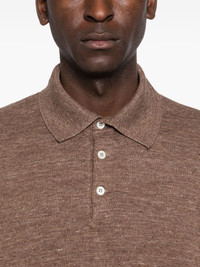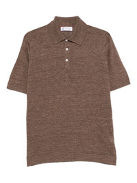 Linen and cotton blend polo shirt [ SKU: 10198726076 ] brown button fastening short sleeves polo collar chest stripe Composition Natural (Veg)->Linen/Flax77.0 % Natural (Veg)->Cotton23.0 % Reference M2L00315C7942 Made in Italy