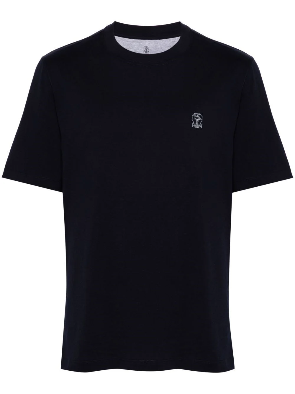 Logo cotton t-shirt [ SKU: 10199041287 ] navy blue cotton round neck logo print at the chest short sleeves straight hem Reference M0B138440CK781