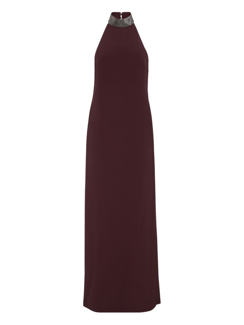 Silk blend maxi dress [ SKU: 10193066370 ] burgundy halter neck embellished neckline sleeveless centre back slit maxi length Reference MA029A5406C4243 Made in Italy