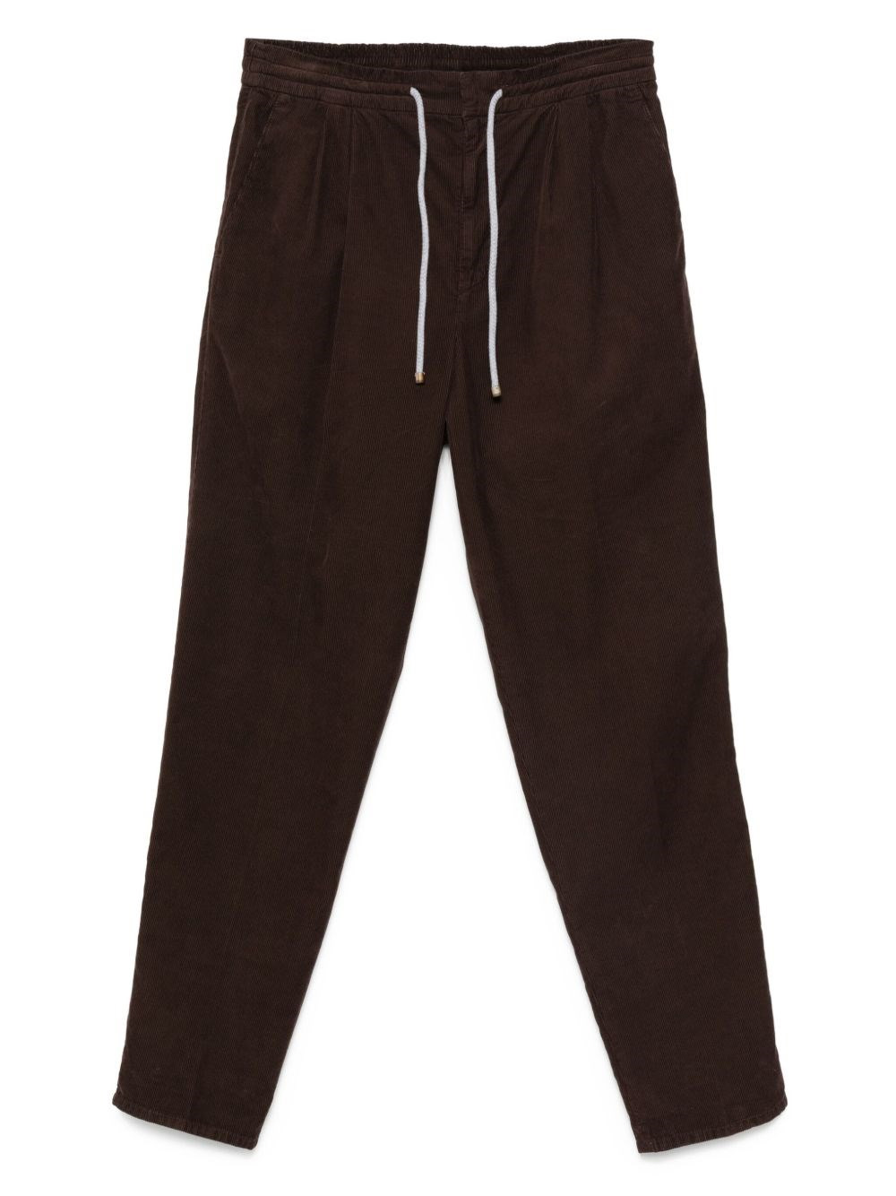 Velvet trousers [ SKU: 10199473256 ] brown cotton elasticated drawstring waistband straight leg rear welt pockets Reference M279UE1710C6026 Made in Italy